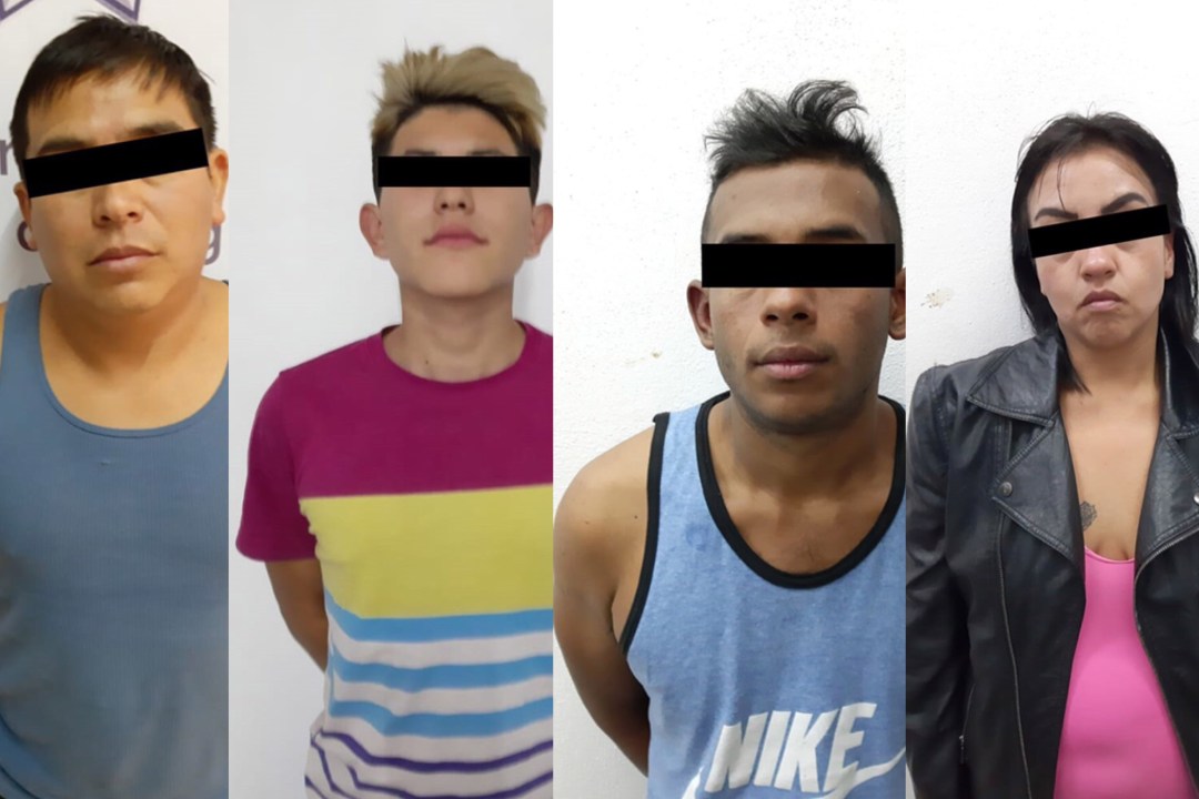 Situación por la que fueron detenidos quienes se identificaron como Gael N. de 16 años de edad, Pedro N. de 27 años, Victoria N. de 32 años y Francisco N. de 36 años de edad, este último además contaba con antecedentes penales.