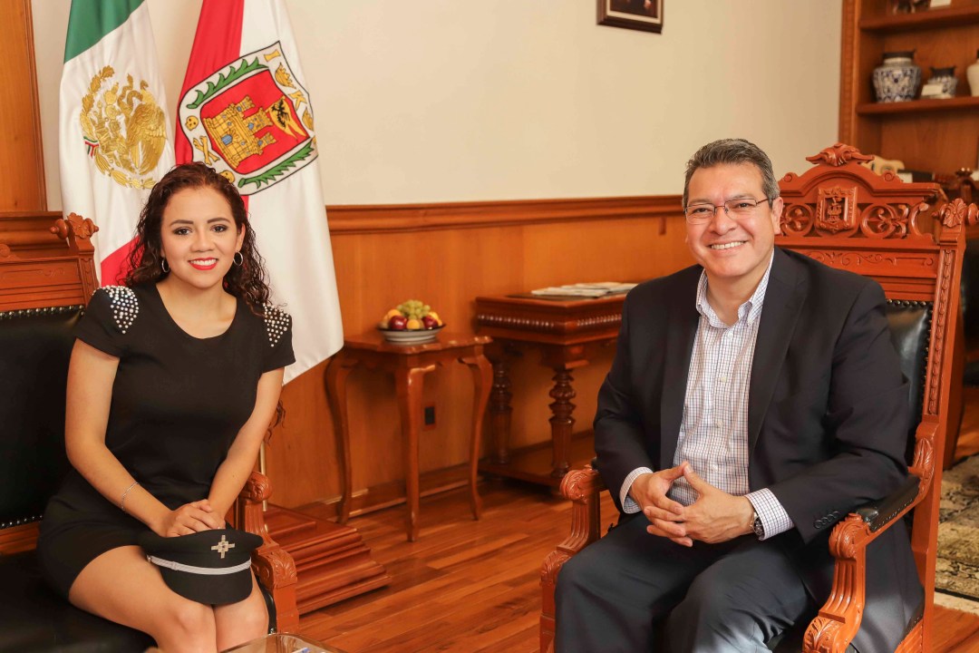 El Gobernador Marco Mena se reunió con la piloto aviador tlaxcalteca Suzzette Nashira Barranco Márquez, a quien reconoció la labor que -a sus escasos 23 años- realiza de forma profesional y el ejemplo que da a mujeres, niños y jóvenes para que luchen por alcanzar sus sueños y metas.