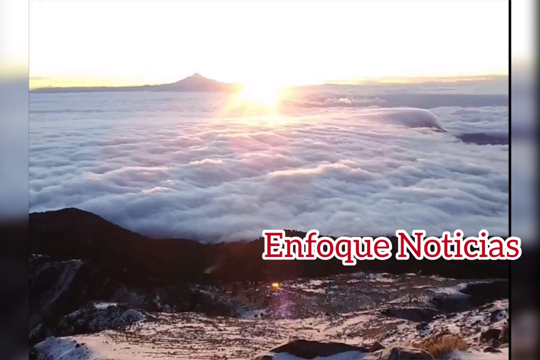 Desde hace 15 años la familia Báez acostumbra a subir a la Malinche para convivir y ver el amanecer, en esta ocasión con la caída de aguanieve lograron captar espectaculares imágenes.