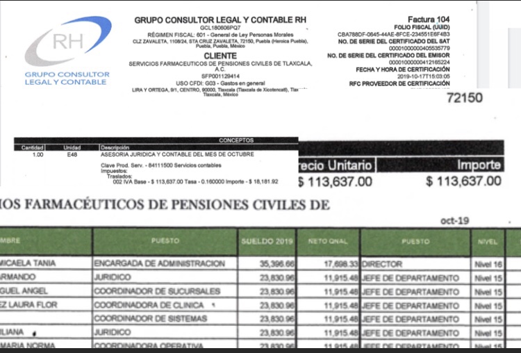 Aunado a esto, los denunciantes aseguraron que Moran Pérez realizó la contratación de un despacho de consultoria poblano, Grupo Consultor Legal y Contable RH, cuyo socio es su amigo y reciben la cantidad mensual de $131, 818.92 por sus servicios, que resultan ineficientes y poco profesionales, pero esto poco ha importado, pues en un año se les ha pagado la cantidad de $1, 581,816.04 pesos.