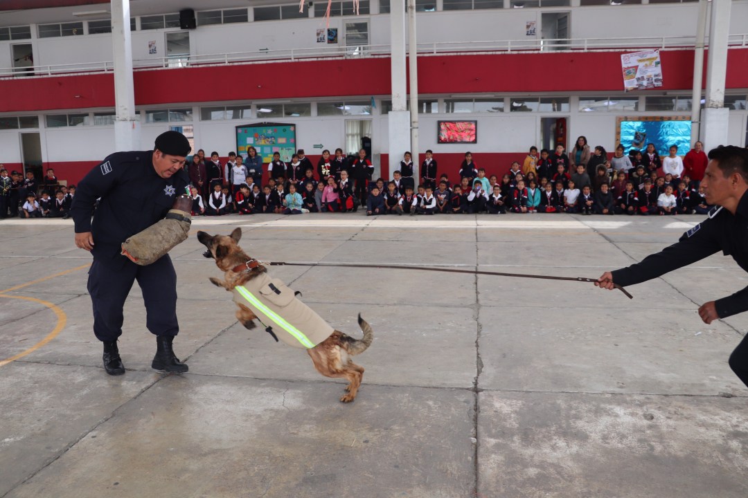 En esta ocasión, elementos de seguridad pública hicieron una demostración de lo que realiza la Unidad Canina K9 DE Xicohtzinco para la detección de narcóticos, personas desaparecidas y armas en la Escuela Primaria Felipe Santiago Xicohténcatl.