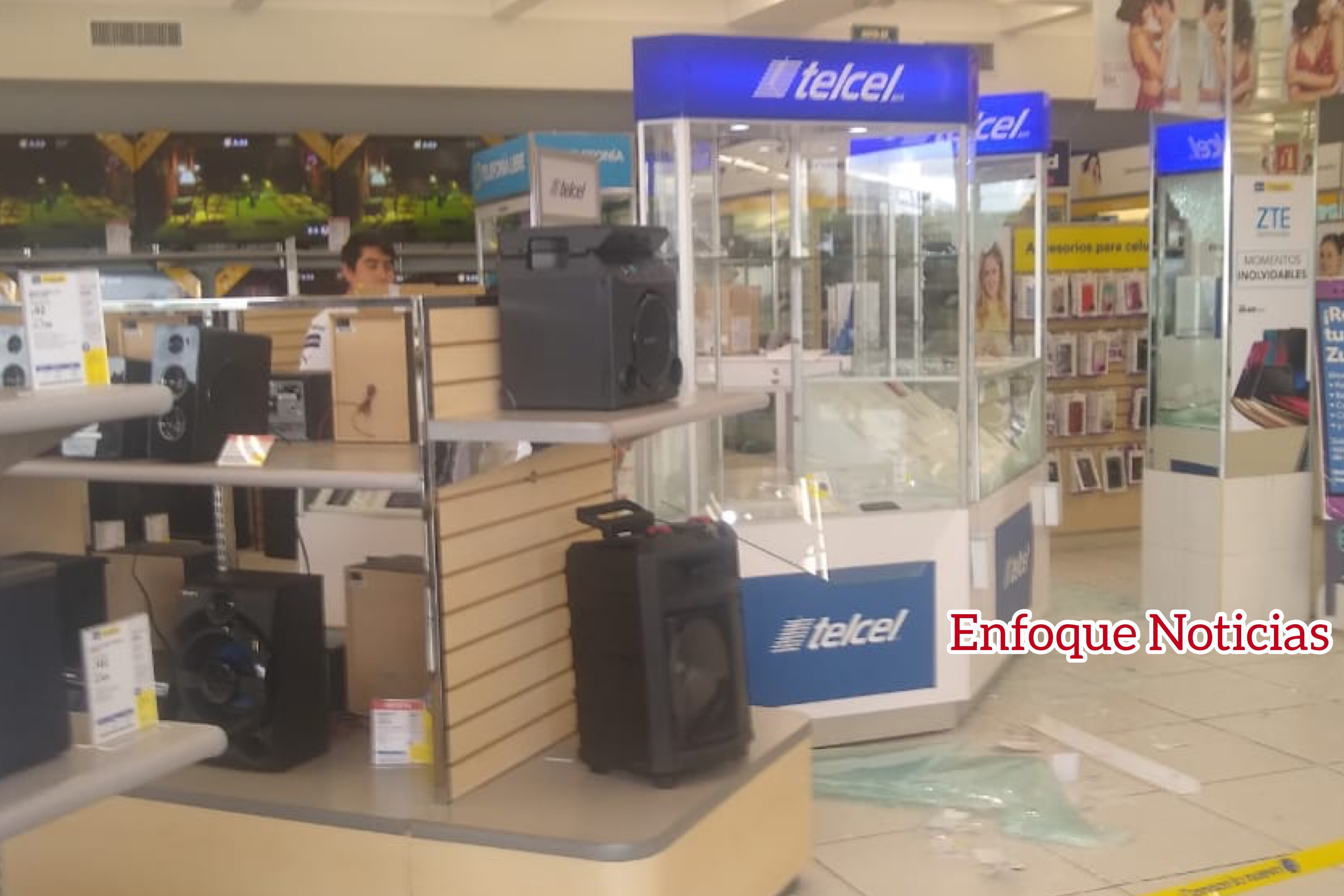 Posteriormente rompieron los cristales de los mostradores para sustraer varios teléfonos celulares y huyeron a bordo de un vehículo color rojo.