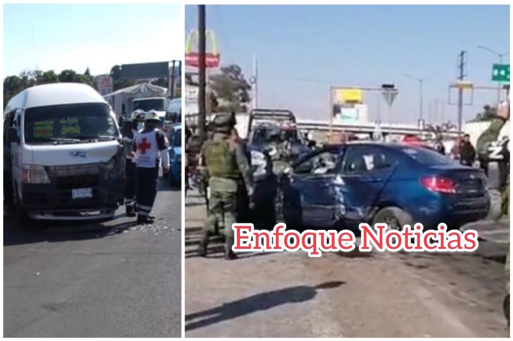 En su desesperado intento de huir de la policía, un par de presuntos delincuentes sufrió aparatoso accidente al chocar su vehículo contra una unidad de transporte público tras cruzar el semáforo cuando estaba en rojo sobre la carretera Vía Corta Chiautempan – Puebla a la altura de McDonalds.