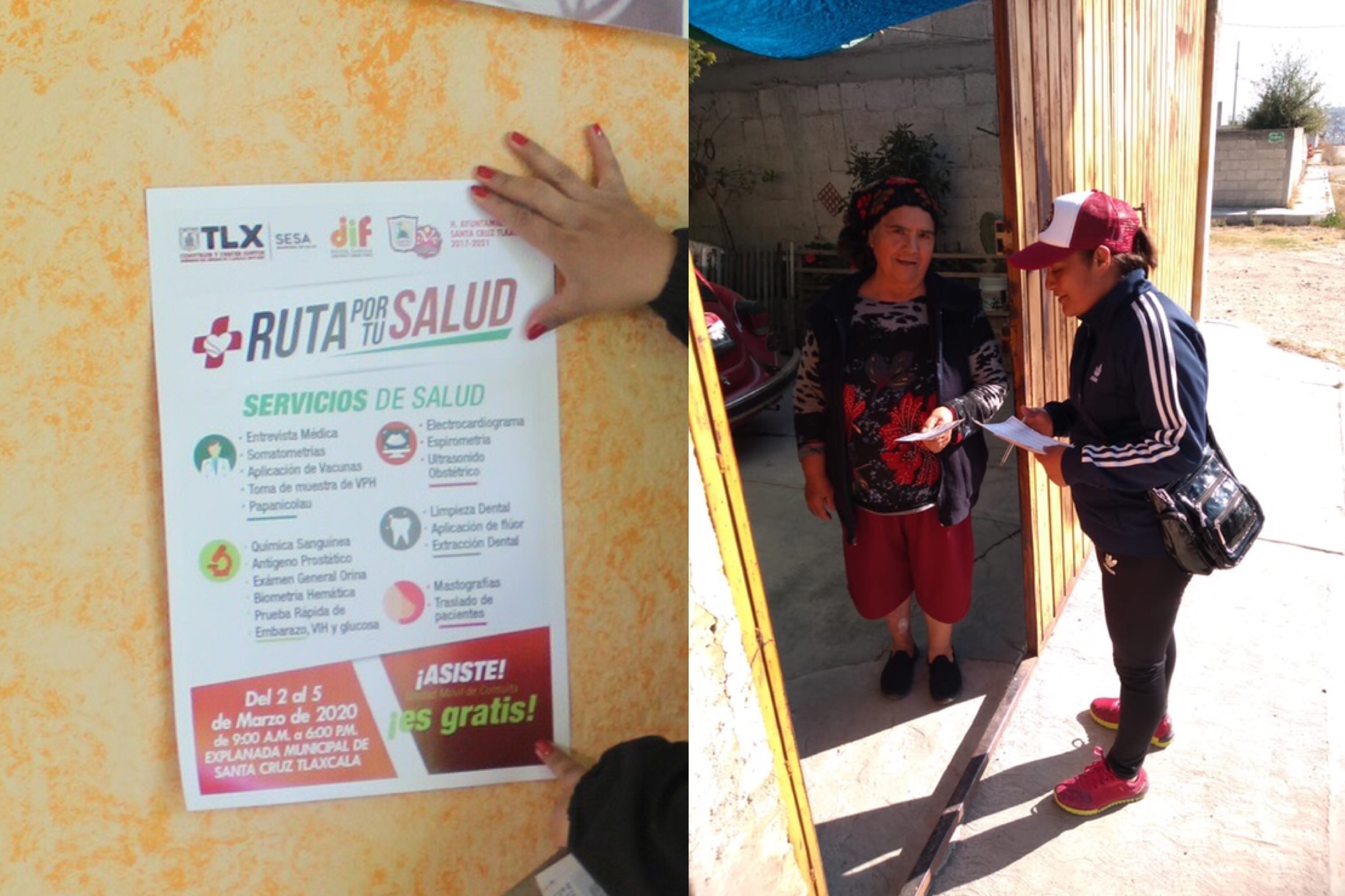 Ciudadanos del municipio de Santa Cruz Tlaxcala y de las comunidades que lo conforman podrán acudir del 2 al 5 de marzo a partir de las 9 de la mañana y hasta las 6 de la tarde a la explanada de la cabecera para asistir al programa preventivo “Ruta por tu salud”, implementado por el por el Gobierno del Estado de Tlaxcala, a través de la Secretaría de Salud y el DIF estatal.