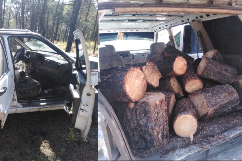 Elementos de la Policía Municipal de Ixtenco, aseguraron un vehículo que en su interior tenia bancos de madera verde, esto en el Parque Nacional La Malinche de lado de Ixtenco.