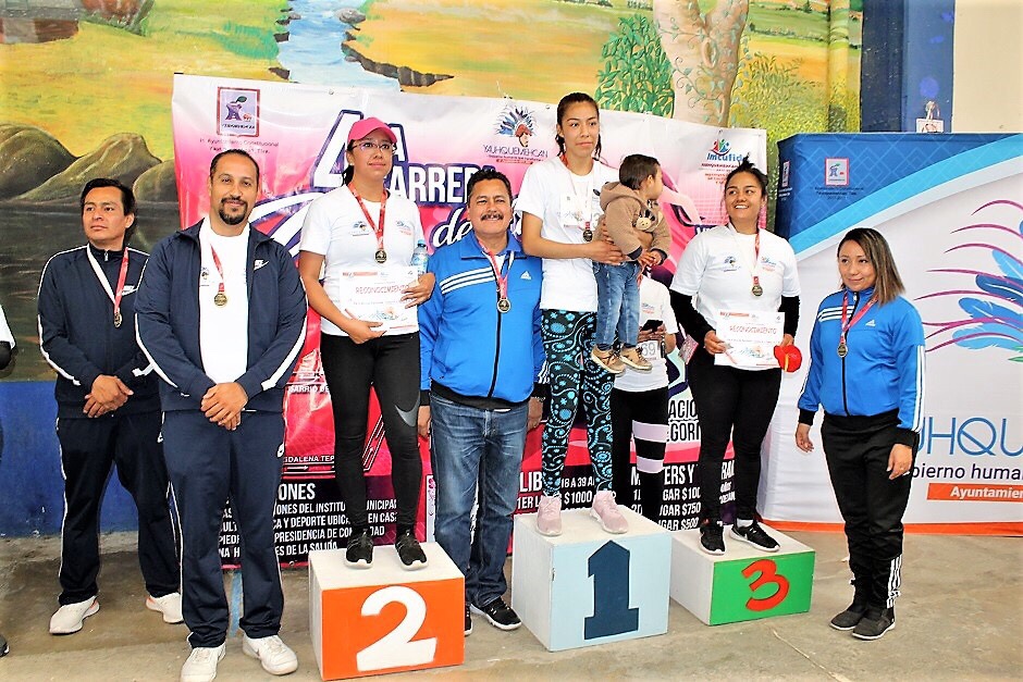 En la premiación fueron entregados incentivos económicos a los tres primeros lugares de cada categoría, para motivar la participación de las mujeres en actividades físicas; además,se otorgaron reconocimientos, playeras y medallas conmemorativas para todas las participantes.