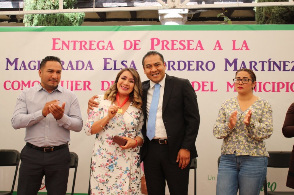 El Presidente Municipal Héctor Domínguez Rugerio, junto con el Secretario del Ayuntamiento Nicolás Gutiérrez De Casa, la Síndico Municipal Linda Ixchel Mejía, la Directora del Instituto Municipal de la Mujer María de Jesús Pérez, y demás mujeres integrantes del Ayuntamiento, realizó la entrega de la “Presea Mujer destacada de Chiautempan” a la Magistrada Elsa Cordero Martínez.