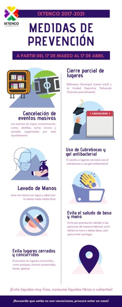 Indicó que como parte de las estrategias de prevención, todas las actividades masivas organizadas por la administración serán canceladas y en su caso reprogramadas hasta después del 20 de abril.