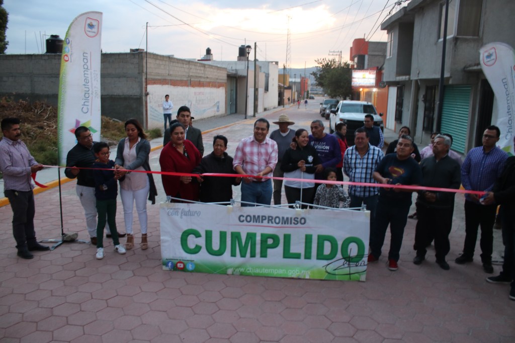 El Presidente Municipal de Chiautempan Héctor Domínguez Rugerio hizo entrega de la obra de pavimentación de adocreto, de la calle Perfecto Gómez, perteneciente al barrio de Tlapacoya, siendo una obra de gran importancia, reconocida como uno de los accesos alternos de Chiautempan.