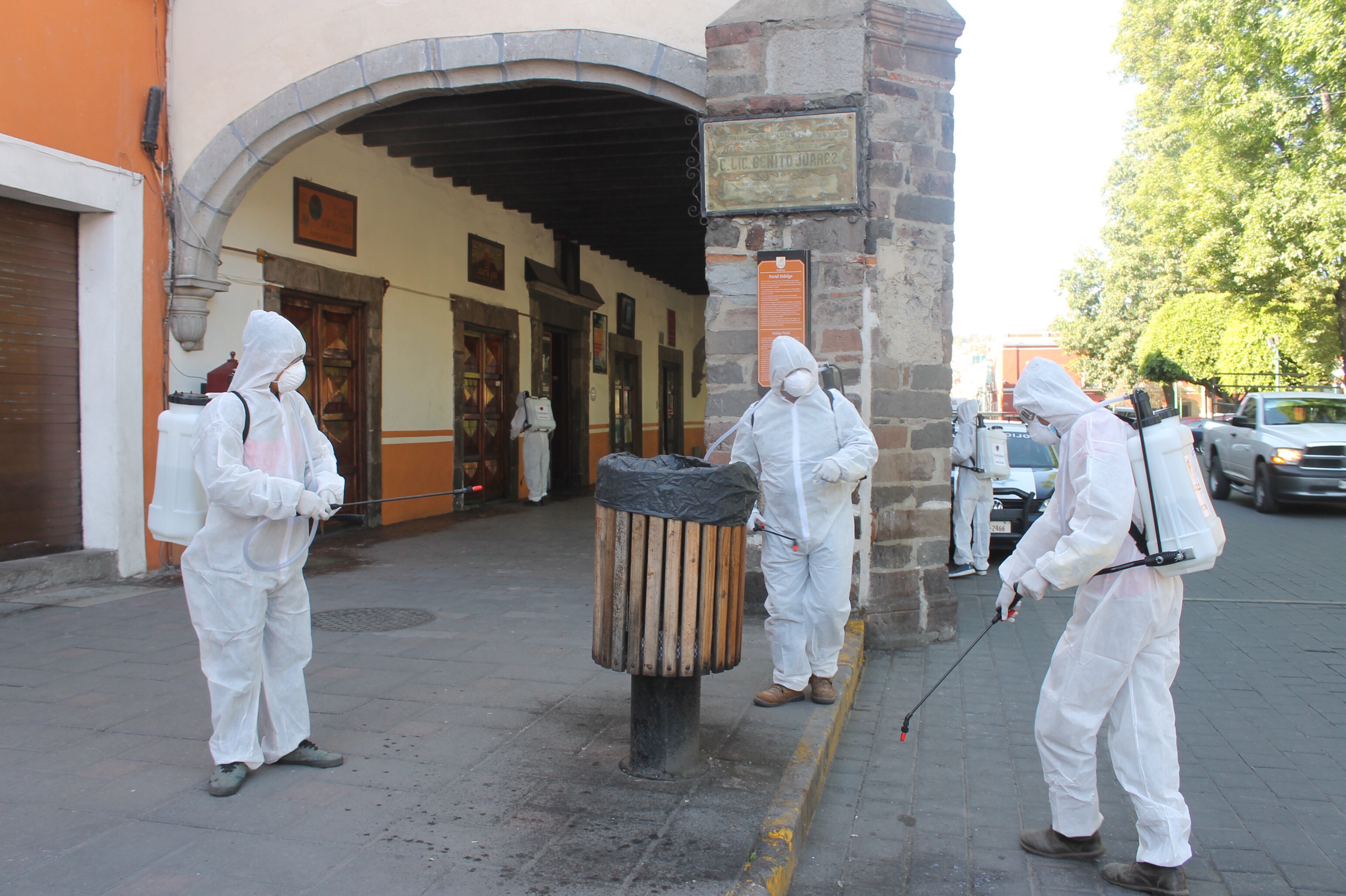 Como ya se informó, este día se efectuó la desinfección en el parque central de la plaza de la Constitución, en la Plaza Xicohténcatl y el parque de San Nicolás; mañana se prevé implementar esta medida en las instalaciones del mercado Emilio Sánchez Piedras y otras zonas, pero la intención es abarcar la mayor parte de espacios públicos.