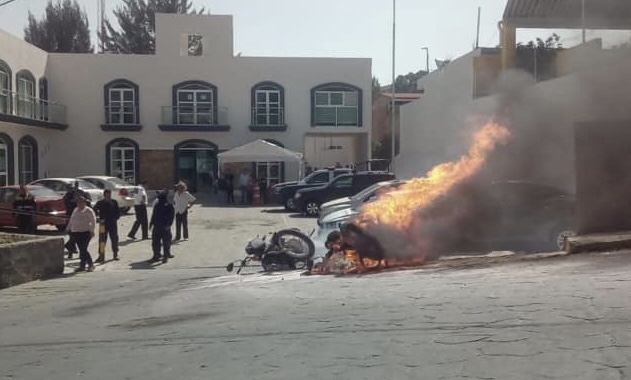 En la manifestación, dos elementos policiacos presuntamente fueron agredidos por los enardecidos pobladores, pues resultaron con quemaduras tras incendiar dos motopatrullas que fueron rociadas con gasolina.