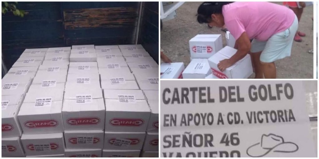 En medio de la contingencia por el Covid-19, presuntos integrantes del Cartel del Golfo realizaron la entrega de despensas entre la población en Ciudad Victoria, Tamaulipas.