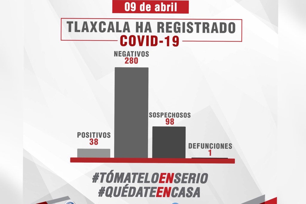 La dependencia detalló que, hasta este momento, se reportan 280 casos negativos, 98 se encuentran en espera de resultado, 38 positivos y una defunción.