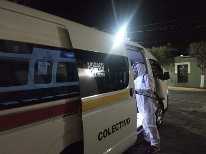 Para disminuir la propagación del Covid-19 en Santa Cruz Tlaxcala fueron sanitizadas las calles de la cabecera municipal, así como unidades del transporte público de la ruta Santa Cruz-Tlaxcala.