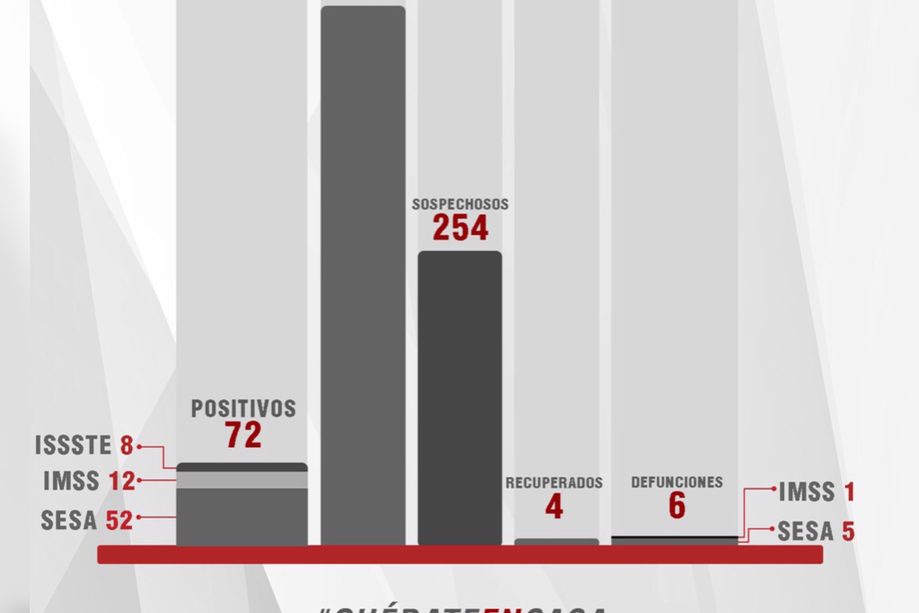 Del total de casos positivos, 52 se han registrado en la SESA, 12 en el IMSS y 8 en el Issste.