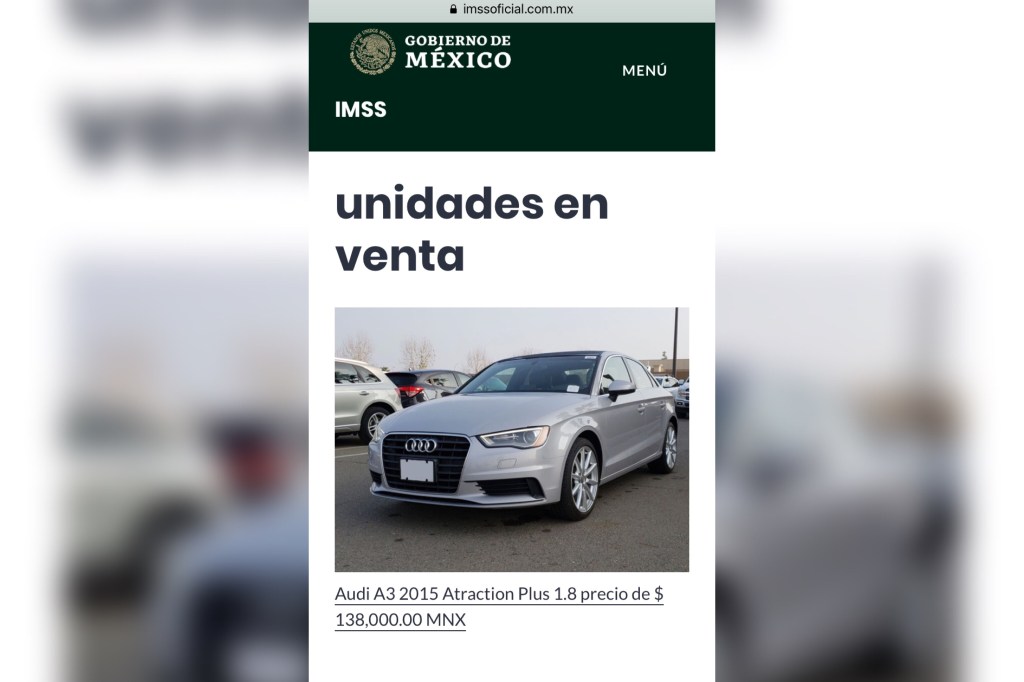 El Instituto Mexicano del Seguro Social (IMSS) denunció el uso indebido del logo símbolo y tipografía oficial del Instituto, así como la habilitación de una pestaña en la que se ofrece la venta de vehículos fraudulenta y anunció el inicio de acciones legales en contra de quien o quienes resulten responsables.