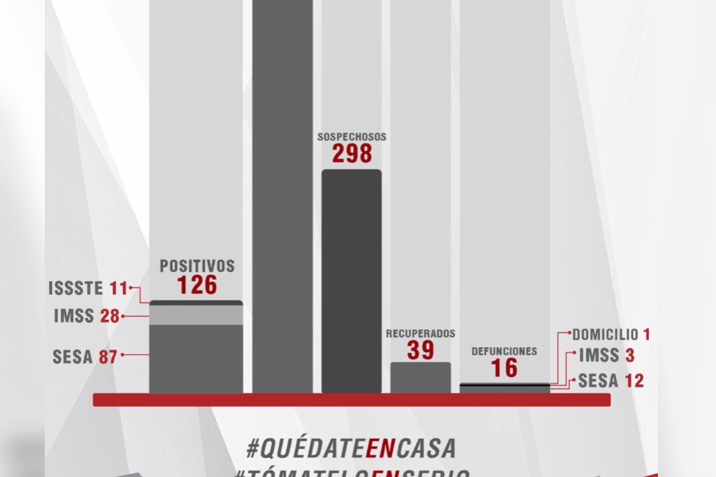 La dependencia estatal informó que, hasta este momento, en la entidad se registran 664 casos negativos, 298 se encuentran en espera de resultado y 126 bajo vigilancia epidemiológica.