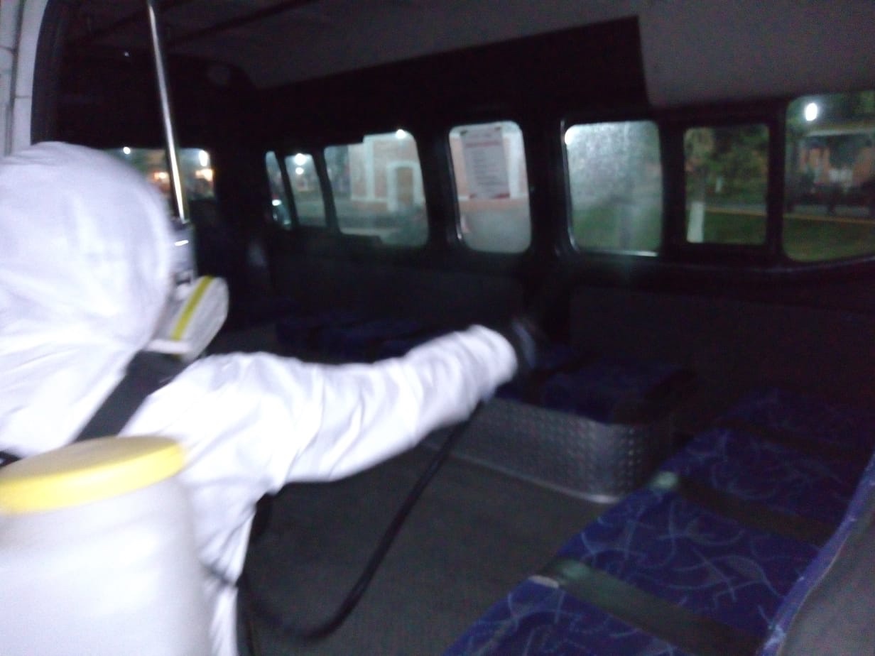 La sanitización se realiza una vez terminadas las labores de los transportistas. Asimismo, personal Protección Civil instruye a los que conducen las unidades a utilizar gel antibacterial y asi como a recibir el pasaje de la mano de quien solicita la parada y no de terceras personas para evitar contagios.