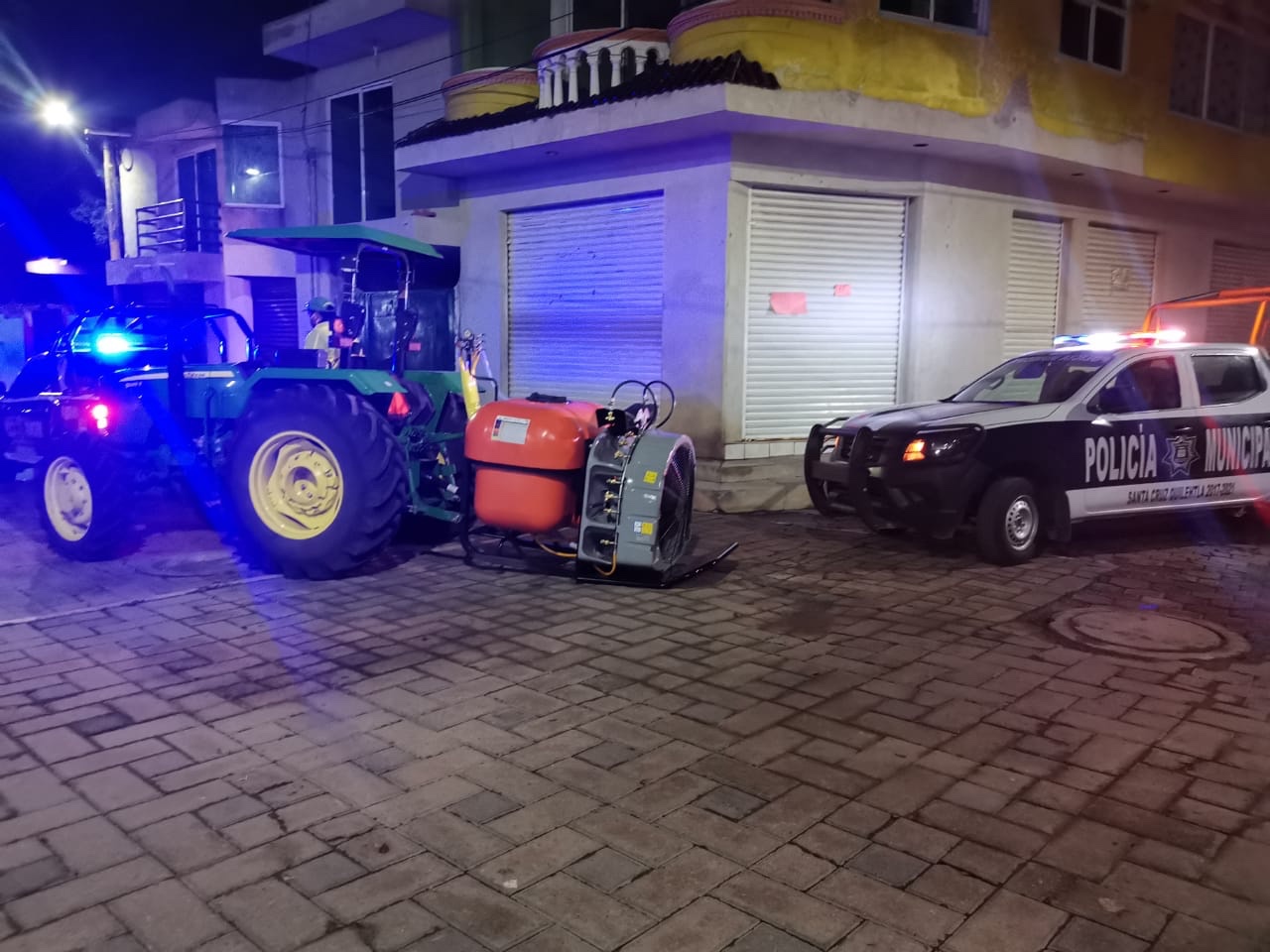 Con el objetivo de reforzar las medidas preventivas y reducir el riesgo de contagio de Covid-19, la madrugada de este domingo la dirección de protección civil municipal de Quilehtla a cargo de José Guerrero Rojas, en coordinación con la brigada de sanitización del estado, realizaron el recorrido con el apoyo de un vehículo tipo tractor que cuenta con un sistema adaptado de nebulizador con esperas y turbina que esparce 5 mil 760 litros de solución para lograr una desinfección con mayor alcance.