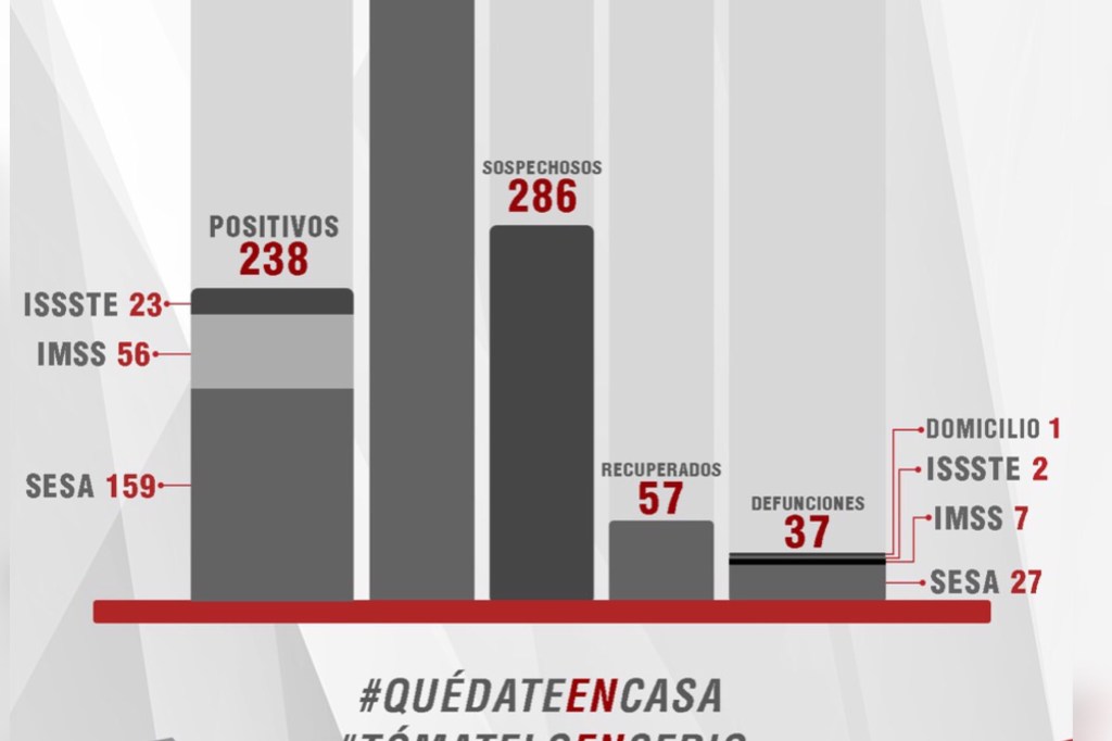 De esta manera, la entidad registra 238 contagios, 57 personas recuperadas de la enfermedad y 37 fallecimientos.