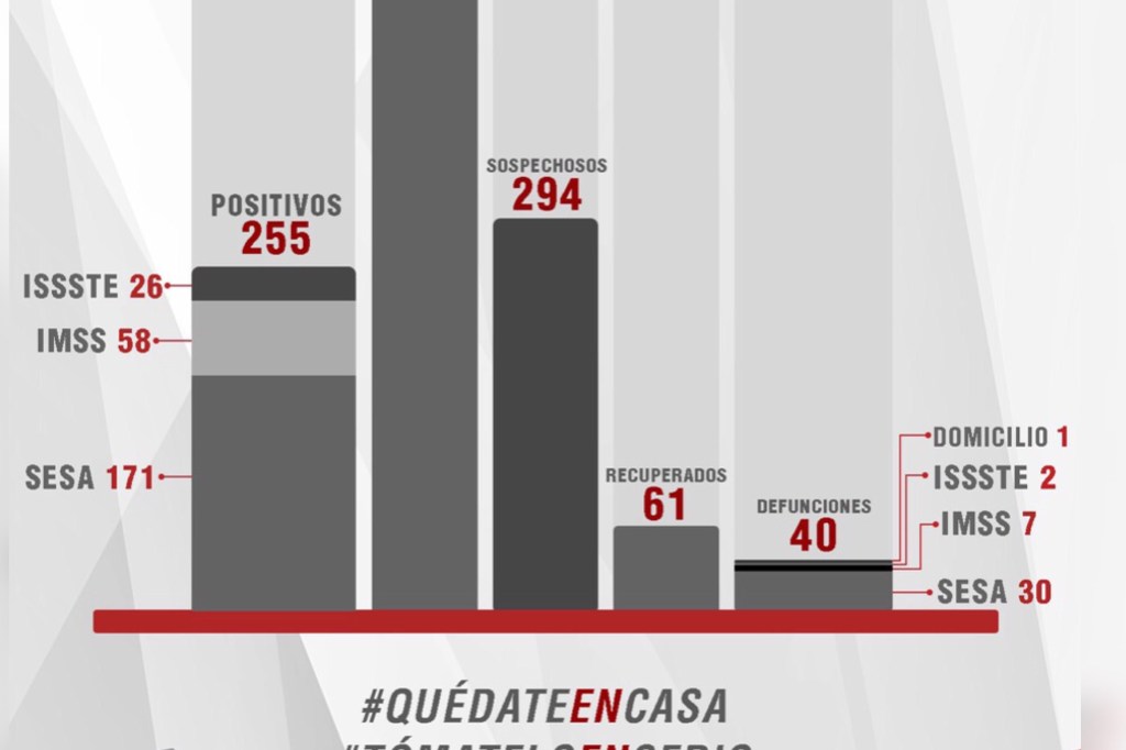 Del total de casos positivos, 171 se han registrado en la SESA, 58 en el IMSS y 26 en el Issste.