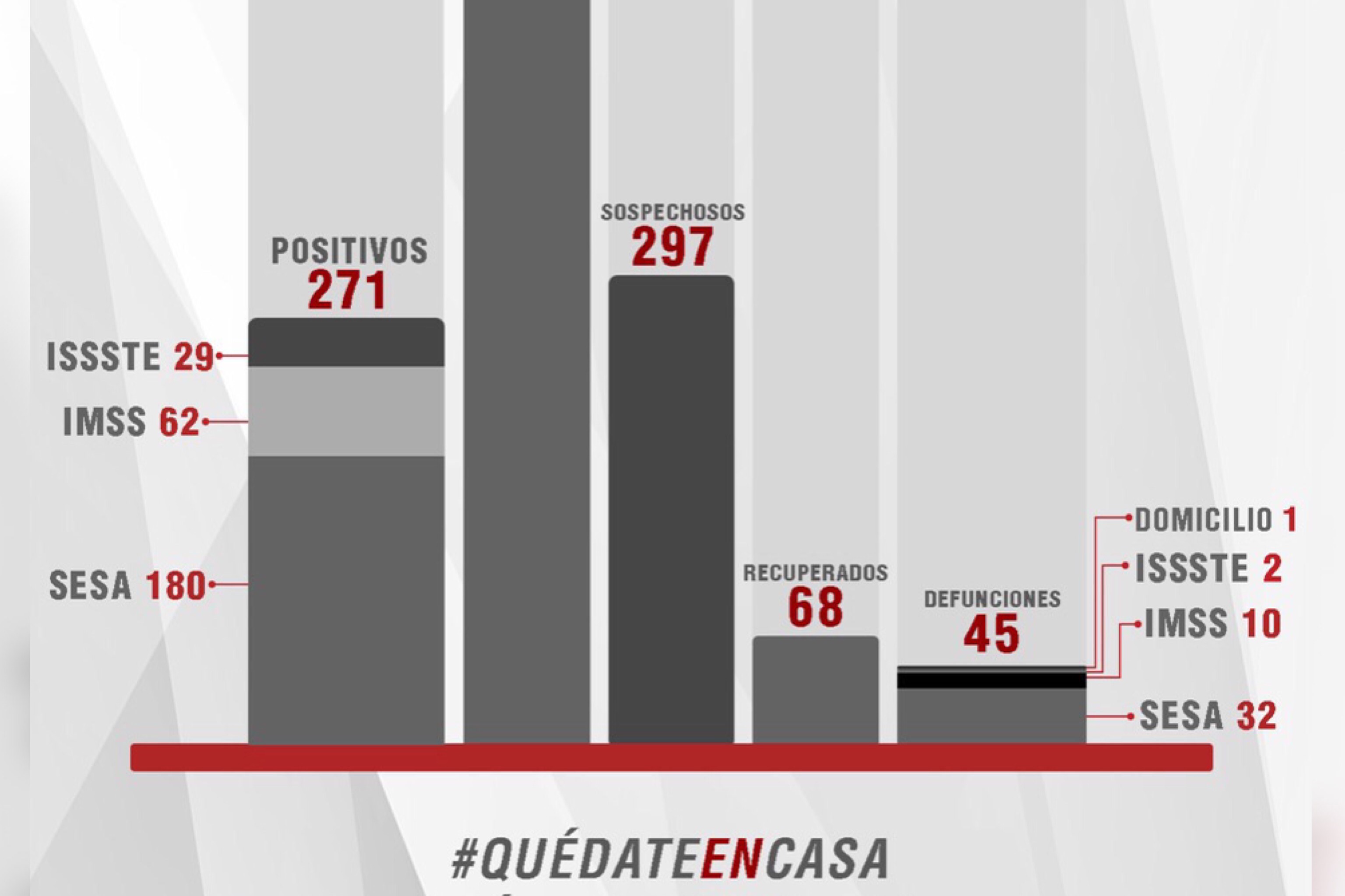 De esta manera, la entidad registra 271 contagios, 68 personas recuperadas de la enfermedad y 45 fallecimientos.