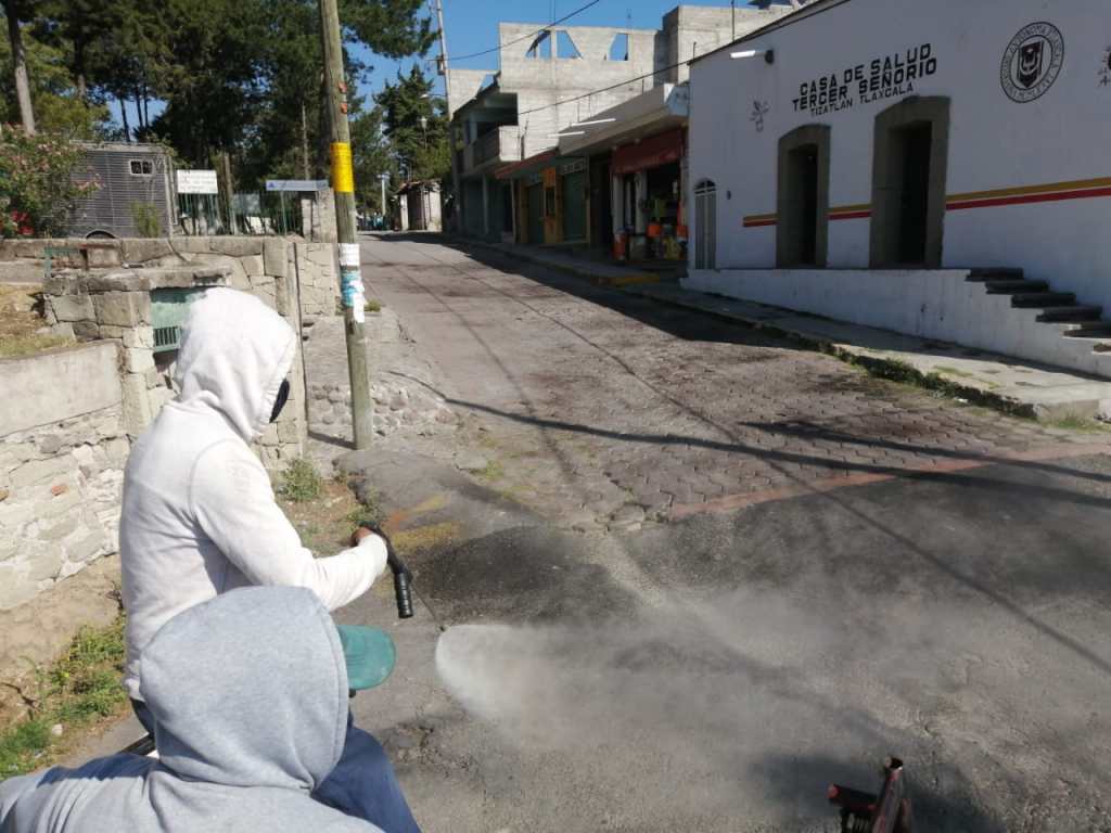 La Dirección de Servicios Públicos del ayuntamiento de Tlaxcala, da seguimiento a las Jornadas de Sanitización en comunidades y localidades de la capital, con el objetivo de disminuir los riesgos de contagio del coronavirus en calles y otros espacios púbicos, sobre todo, ante la tercera fase de la pandemia que se registra en el estado.