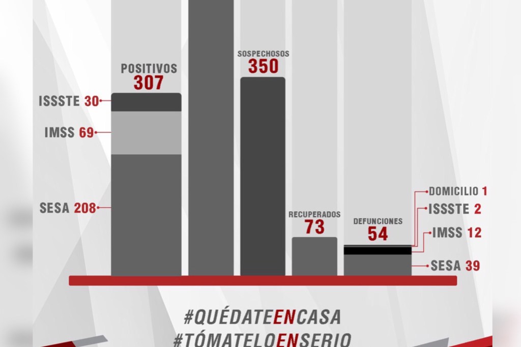 Del total de casos positivos, 208 se han registrado en la SESA, 69 en el IMSS y 30 en el Issste.