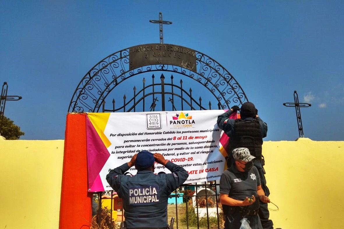 El Gobierno municipal de Panotla, que encabeza el presidente Eymard Grande Rodríguez, en ejercicio de las facultades, procedió de manera inmediata al cierre definitivo de la totalidad de panteones ubicados en el municipio, prohibiendo el acceso a la ciudadanía del 8 al 11 de mayo, el objetivo es evitar contagios por aglomeración de personas.