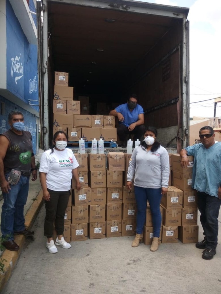 En una primera entrega, la empresa porcícola, a través del Sindicato de la CROM, el cual forma parte de la Mesa Tripartita junto con el Instituto Mexicano del Seguro Social y GCM, donó a la delegación estatal del IMSS en Xalapa, 1000 litros de gel antibacterial, para hacer un total de 4 mil 800 litros tan solo para esta institución.