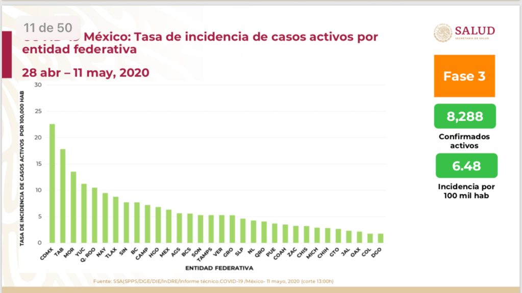 Hasta el 24 abril, Tlaxcala se ubicaba en el lugar 12 a nivel nacional en incidencia.