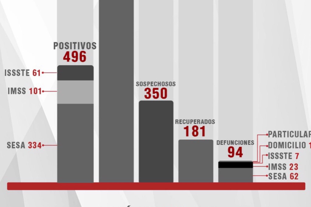 Del total de casos positivos, 334 se han registrado en la SESA, 101 en el IMSS y 61 en el Issste.
