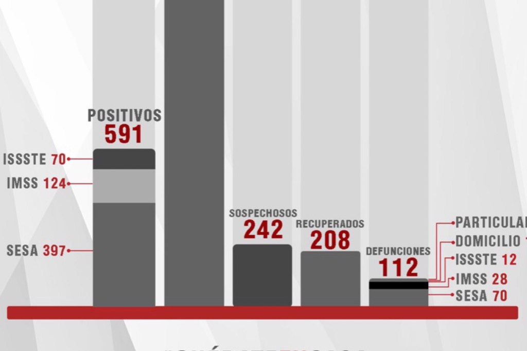 Del total de casos positivos, 397 se han registrado en la SESA, 124 en el IMSS y 70 en el Issste.