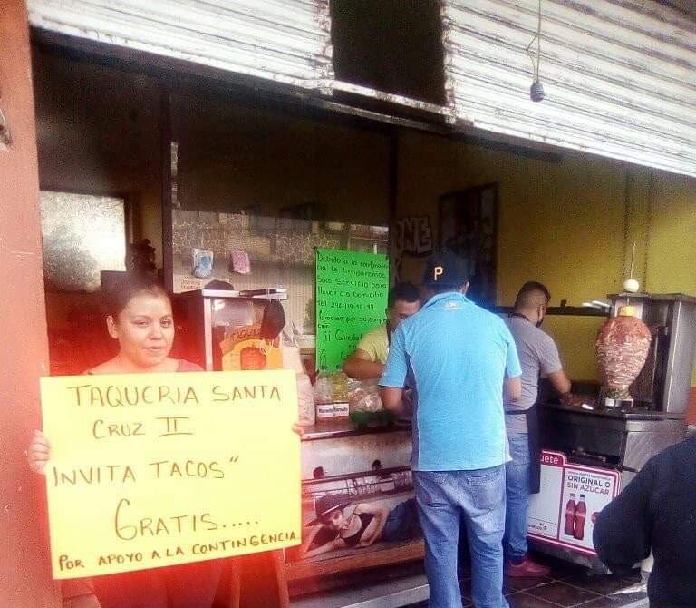 «Taqueria Santa Cruz II invita tacos. GRATIS por apoyo a la contingencia», se pudo leer en la cartulina que portó el personal del establecimiento.