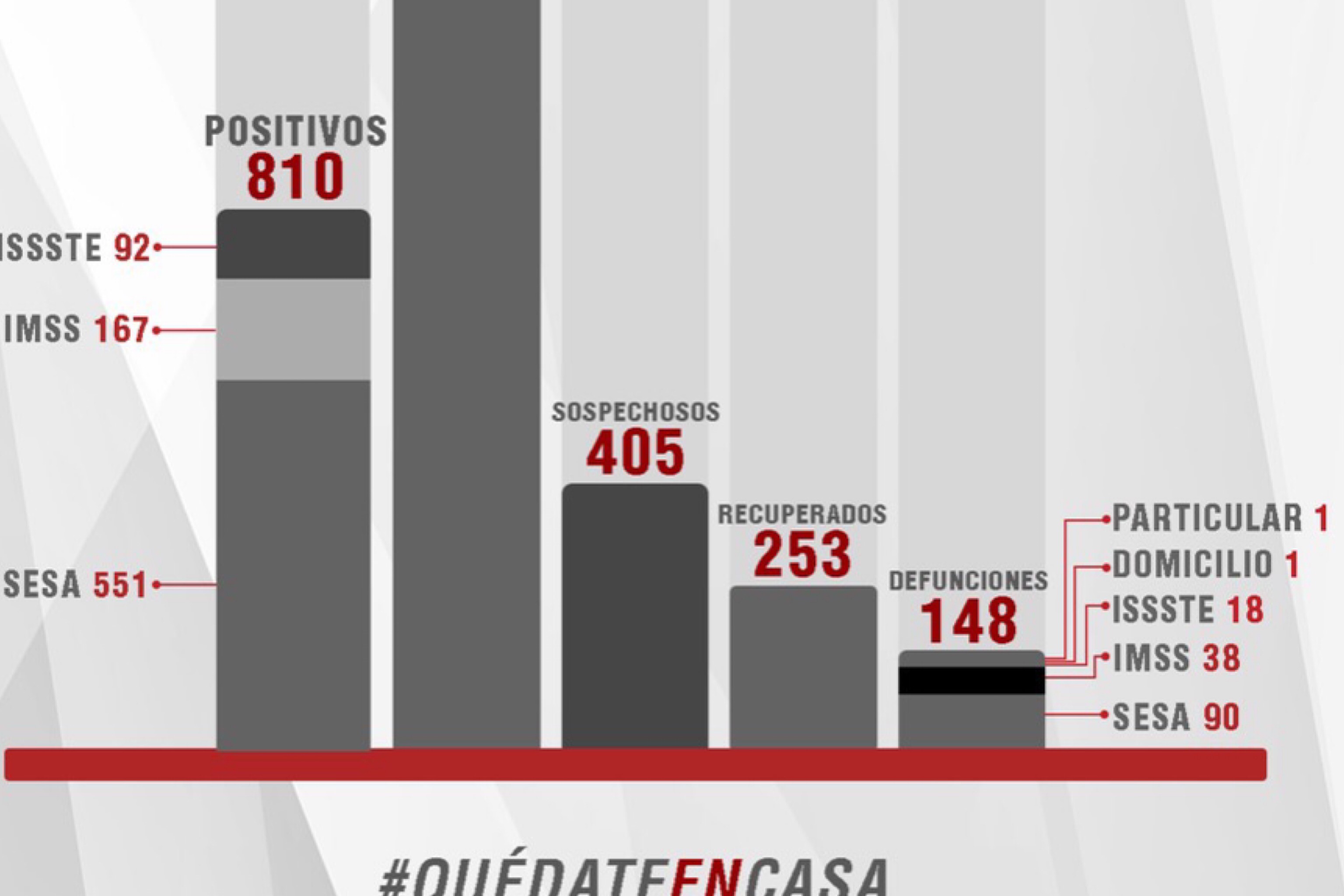 Del total de casos positivos, 551 se han registrado en la SESA, 167 en el IMSS y 92 en el Issste.