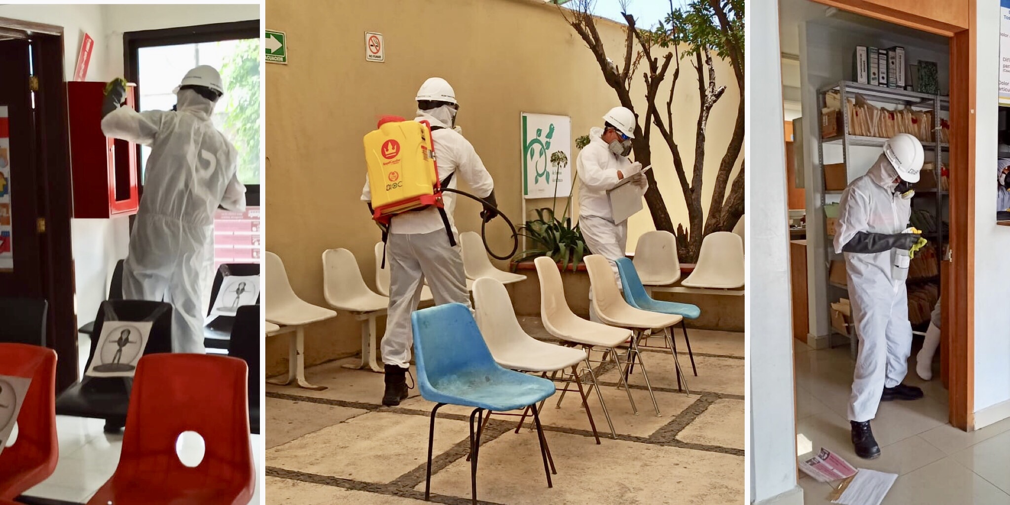 También se realizó la desinfección de forma espacial con técnica de aspersión manual, con sales cuaternarias de amonio de séptima generación en emulsión con agua al 0.2%.