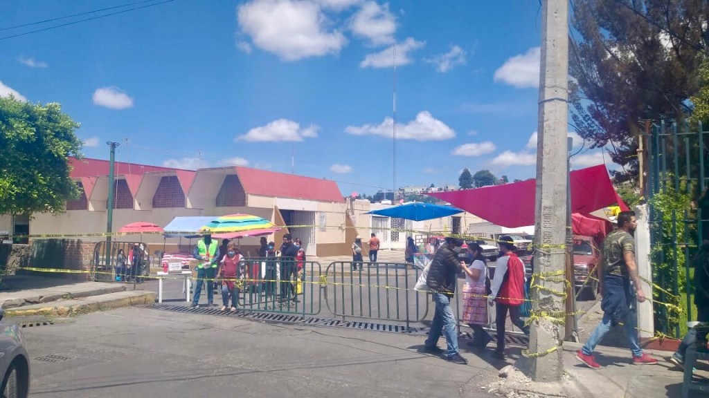 Como cada sábado, el ayuntamiento de Tlaxcala en coordinación con el Gobierno del Estado continúa con las medidas de prevención en el tianguis sabatino con el fin de hacer frente a la pandemia del coronavirus a través de la instalación de filtros sanitizadores, entrega de cubrebocas, gel antibacterial y la toma de temperatura.