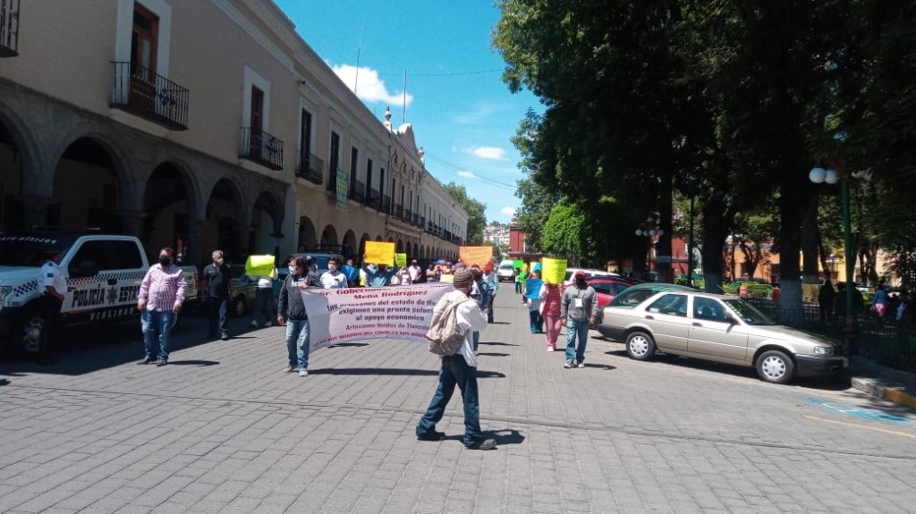 El contingente de manera pacífica durante su marcha que partió de la Casa de las Artesanías, en bulevar Mariano Sánchez, pasando por Guerrero, Independencia y zócalo, también pidió a la alcaldesa capitalina, Anabell Ávalos Zempoalteca, que ordene la inmediata apertura de la Plaza Xicohténcatl, donde se establecen cada fin de semana artesanos.