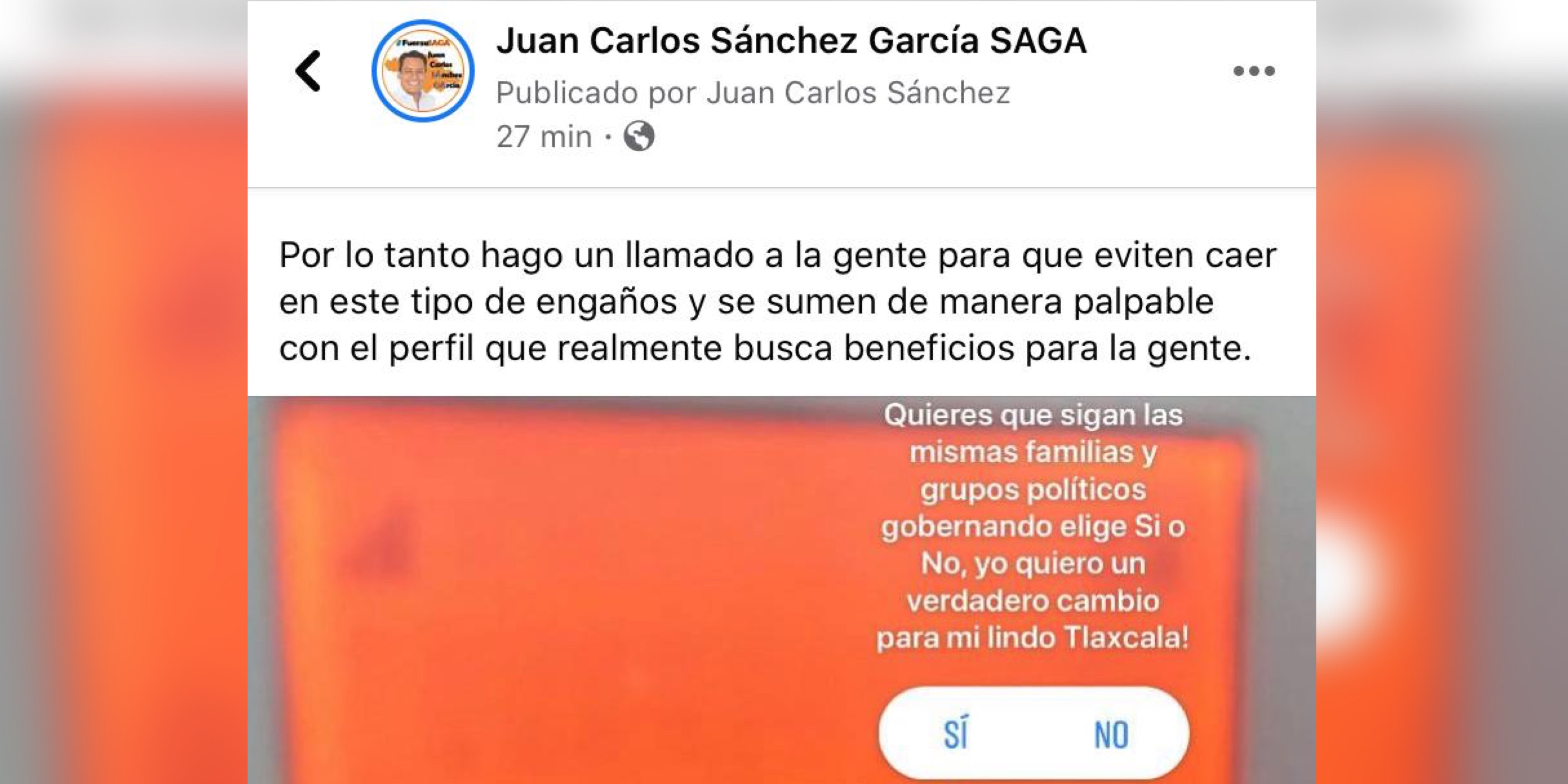 De lo anterior el aspirante Juan Carlos Sánchez García, mostró su molestia en sus redes sociales y comentó que este tipo de artimañas buscan mañosamente confundir a la gente para no votar por el perfil que realmente apoyarán en los comicios del 2021.