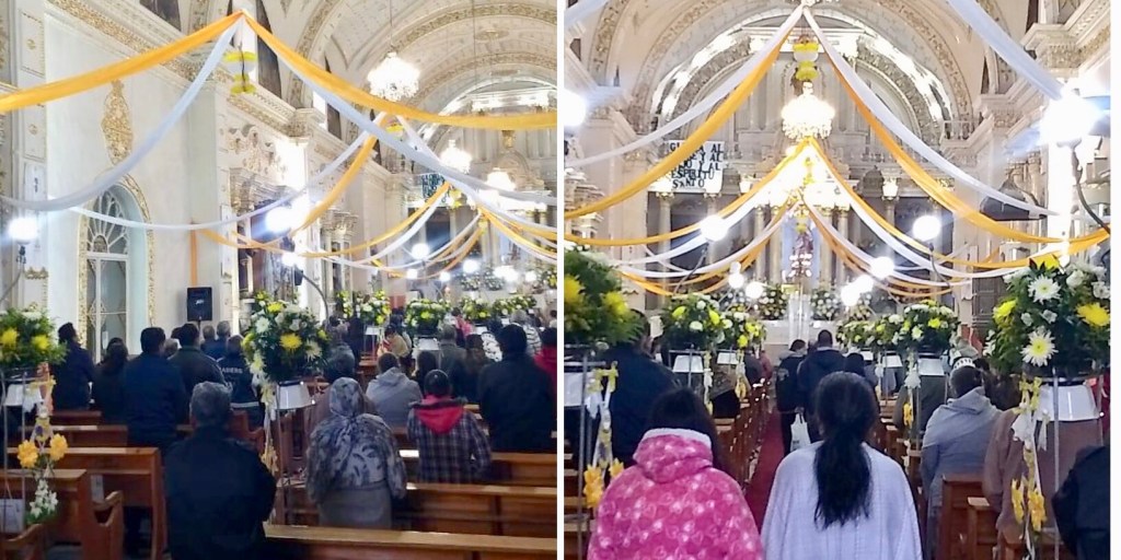 Esta mañana, más de un centenar de fieles acudieron a la iglesia, la mayoría de ellos sin cubrebocas, sin sana distancia, además de que no se repartió gel antibacterial.