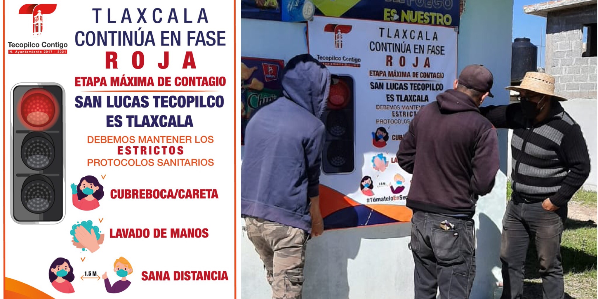Con la finalidad de recordar a los ciudadanos que la entidad tlaxcalteca se mantiene en semáforo rojo en la contingencia sanitaria, el gobierno de Tecopilco, continúa con la difusión de acciones las medidas preventivas.