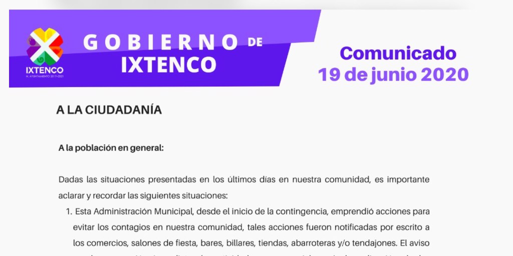 Luego de que algunos sectores de la población, entre ellos el párroco de Ixtenco y mayordomos, hicieran caso omiso a las recomendaciones, el ayuntamiento de Ixtenco reiteró las disposiciones derivado de la pandemia de Covid-19, entre las que destacan la suspensión de actividades no esenciales.