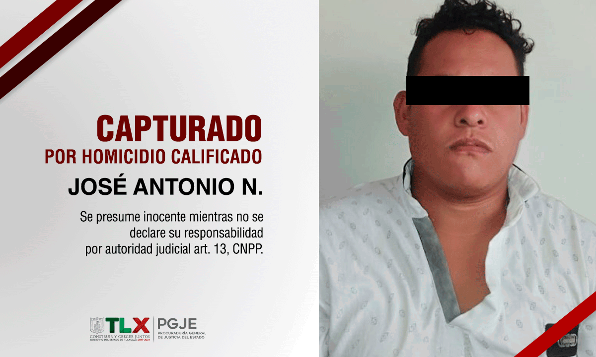 La Procuraduría General de Justicia del Estado (PGJE) logró esclarecer el homicidio de un hombre ocurrido en el municipio de Teolocholco, al concretar la captura de José Antonio N., señalado como probable responsable del delito.