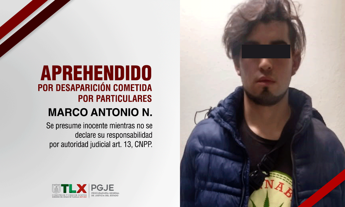 La Procuraduría General de Justicia del Estado (PGJE) a través de la Fiscalía Especializada en Personas Desaparecidas y No Localizadas, logró la aprehensión de Marco Antonio N., presunto implicado en la desaparición cometida por particulares en agravio de Jorge Francisco N., en febrero de 2019.