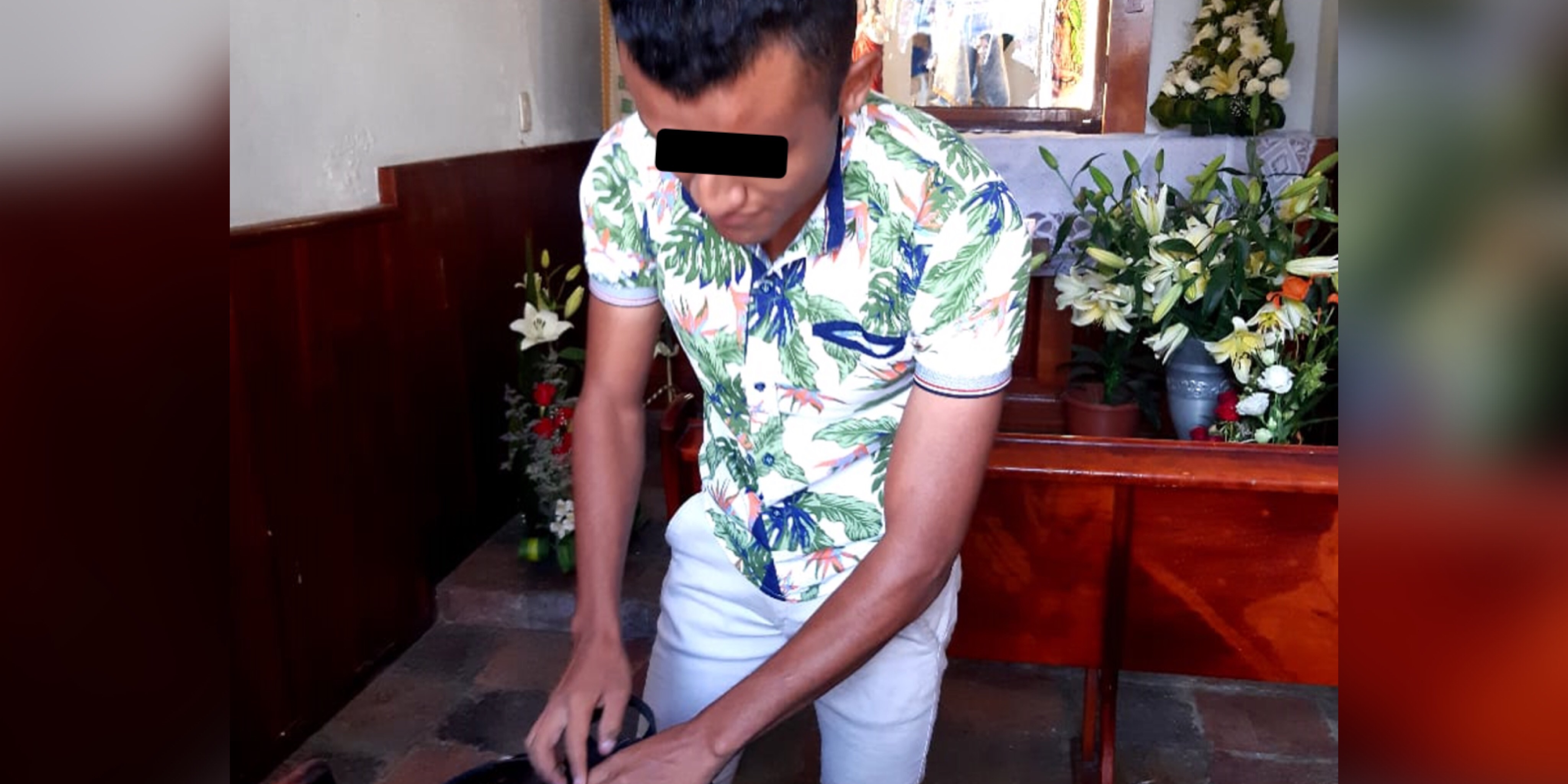 Elementos de la Policía Municipal de Chiautempan detuvieron a un masculino, que fue sorprendido mientras intentaba robar el dinero de una alcancía de la Capilla de San Sebastián, ubicada en la Calle Manuel Saldaña del Municipio Sarapero.