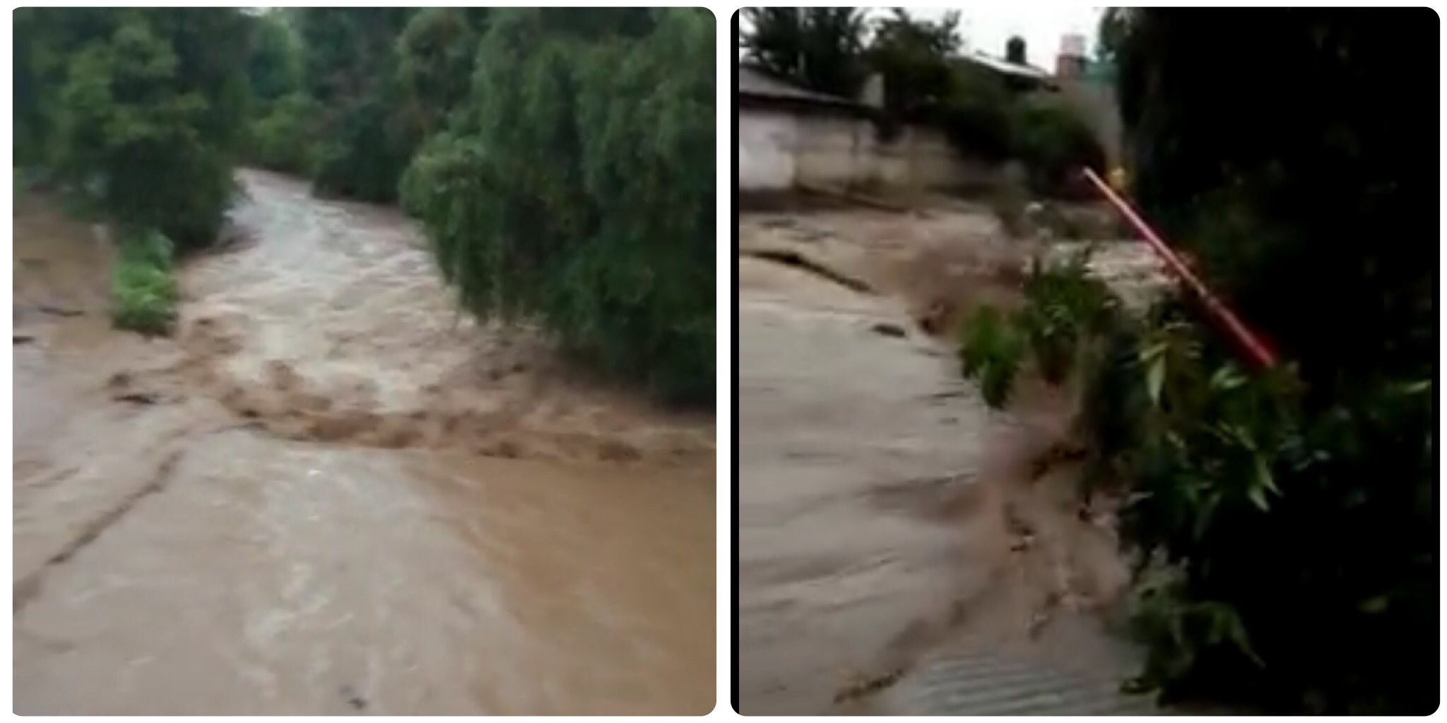 La fuerte lluvia de esta tarde causó el desbordamiento del río Agua de Gloria ubicado en los límites de Papalotla y Panzacola, en donde afortunadamente no hubo afectaciones a la población, pues solamente se reportó la caída de un poste de alumbrado público y daños en adoquín.