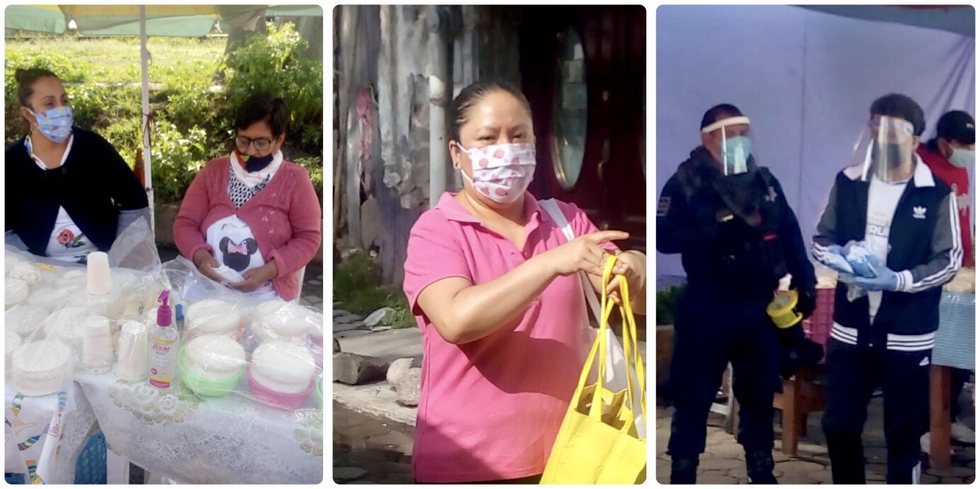 Con la finalidad de evitar contagios, autoridades del municipio de Papalotla aplicaron filtros sanitarios en el tianguis de Panzacola.