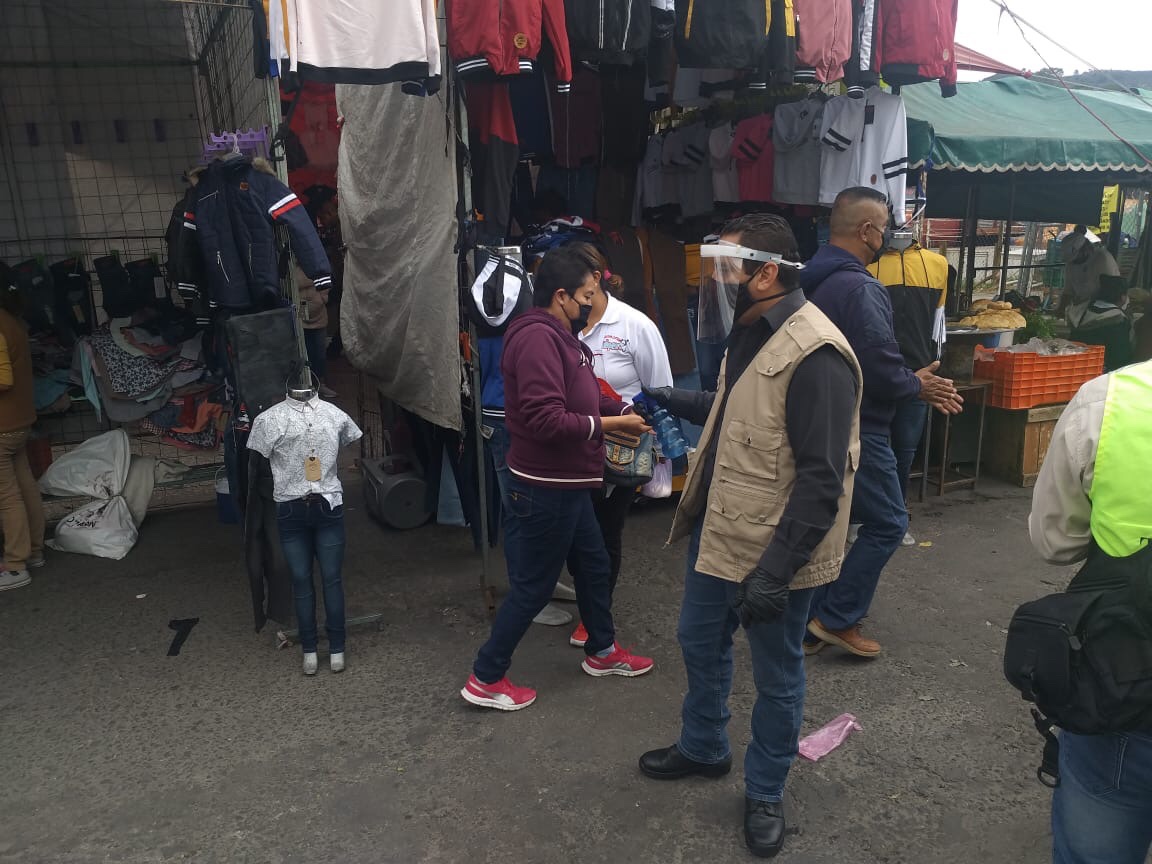 El Ayuntamiento de Tlaxcala en coordinación con el Gobierno del Estado y la Guardia Nacional, da seguimiento a los filtros sanitarios en el tianguis sabatino de la capital, esto como medida preventiva para evitar la propagación del coronavirus, sobre todo con el incremento de comerciantes.