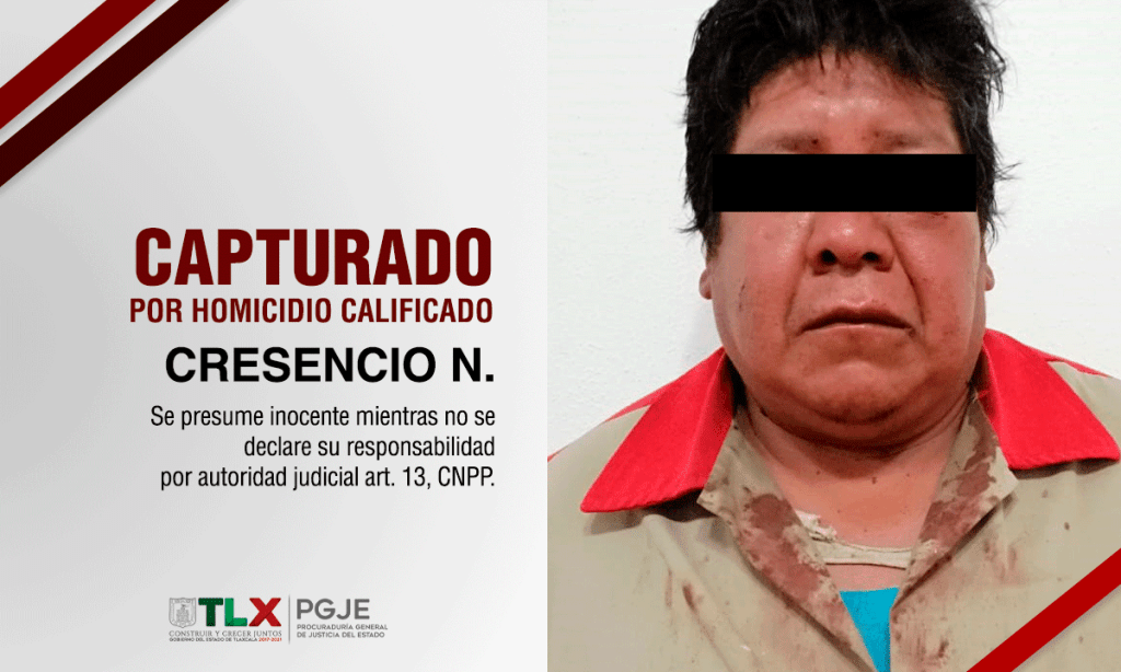 El trabajo inmediato y especializado de la Procuraduría General de Justicia del Estado (PGJE), tuvo como resultado la captura de Cresencio N., señalado como el presunto autor material del homicidio de un hombre en el municipio de Tocatlán, hechos ocurridos la noche del 11 de julio.