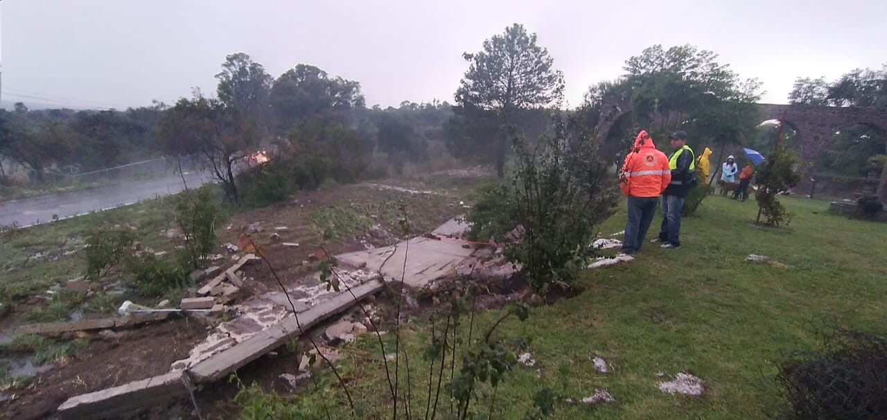 Tras el fenómeno natural que se registró en varios municipios de la región se reportaron daños en bardas en el municipio de Texoloc.